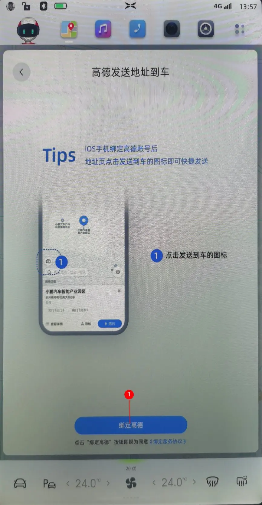 在绑定了高德账号的情况下,直接点击屏幕上面那个“车+手机”小图标,即可直接分享到车机上面了