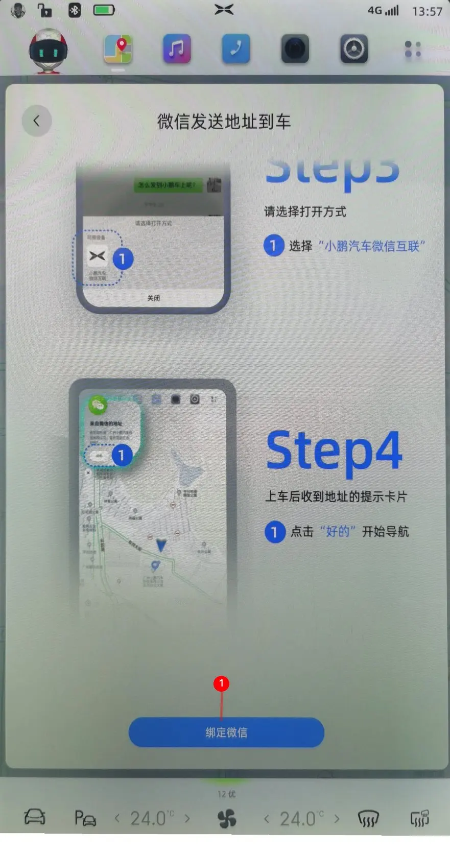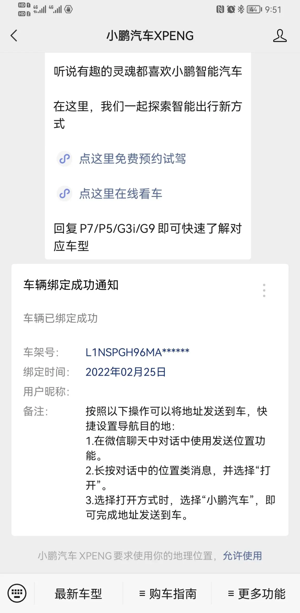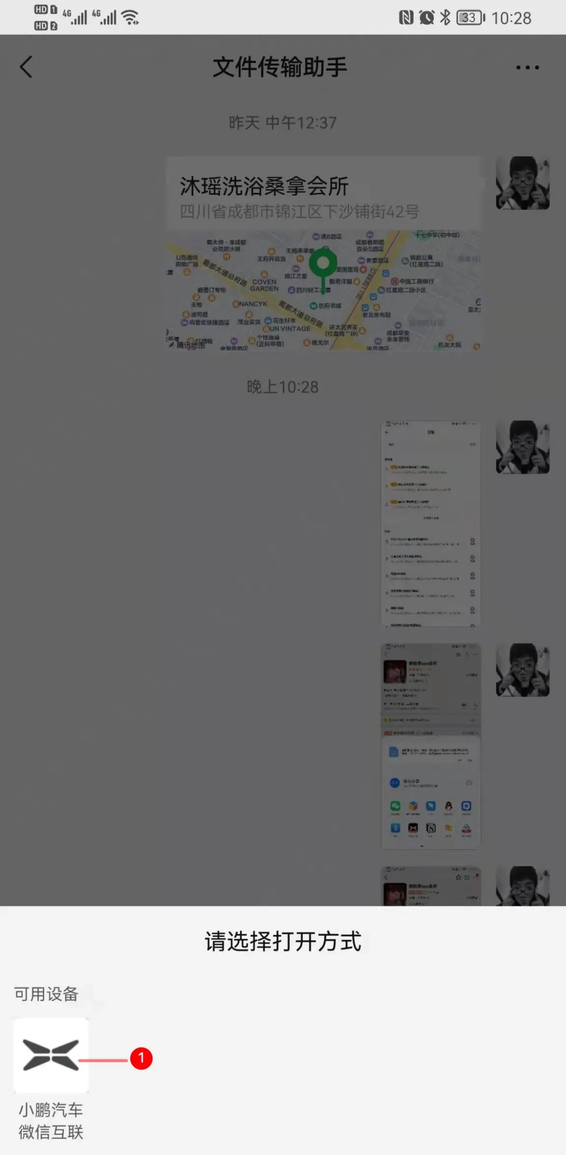 这时有兄弟发过来一个大保健地址,就可以直接长按定位地址,在弹出来的窗口里面选择打开,然后选择“小鹏汽车微信互联”即可。