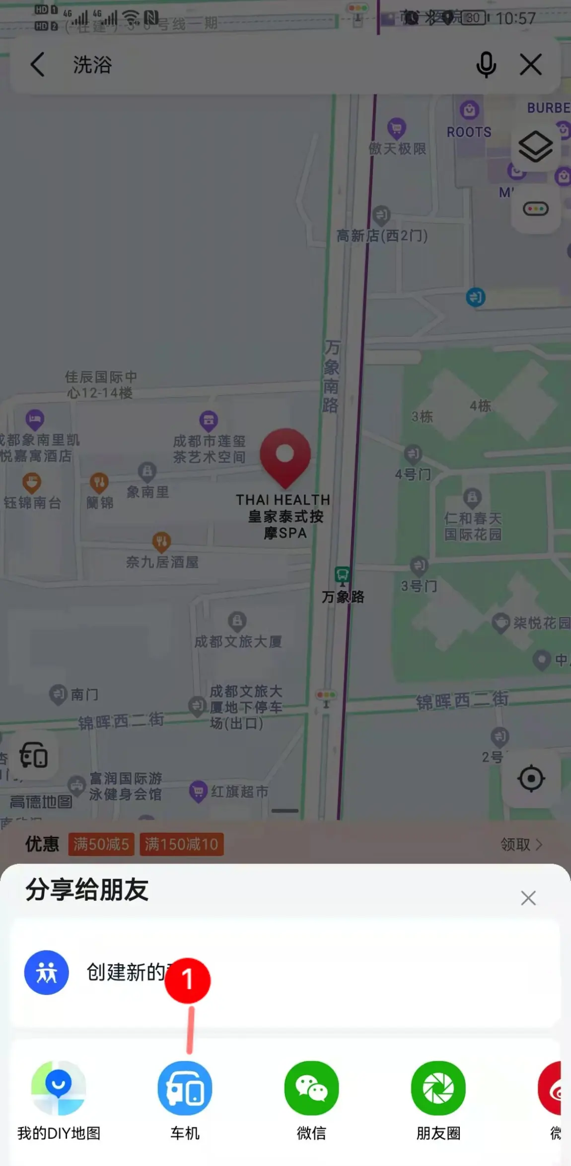 咱们是不是经常在大众点评上面去看各家洗浴中心的评价,看到一家评价非常高的,是不是也想去体验一下,怎么快速把地址发送给爱车呢?
