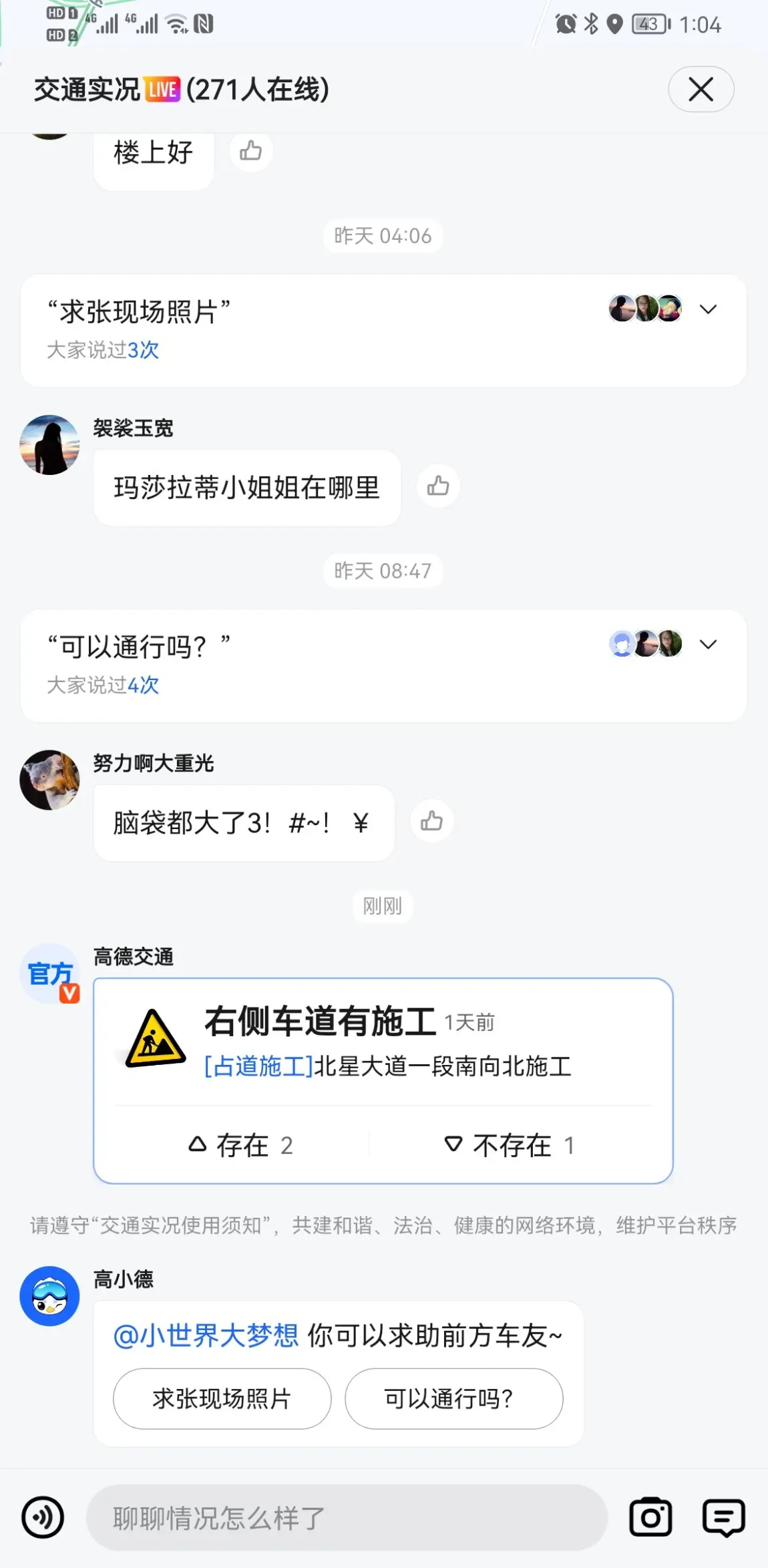 在手机高德上,如果有一段拥堵路线,会生成一个聊天室,大家可以点进去聊天,也可以了解到拥堵的原因,但在车机上面就只能看到一段红线,没办法了解到拥堵的原因。