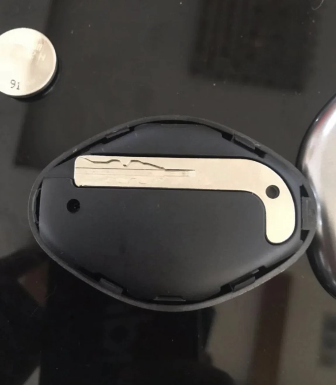 按照图片复原,先别急着合上,先测试一下,免得一会又要拆开。背后是有机械钥匙结构的,之前也有一些朋友在问,啊如果钥匙没电,是不是连车都开不走了呀,其实也有机械钥匙开门的,还有可以通过app启动,连接蓝牙启动,或就拿手表开门?或着拿卡片开门,其实开门的方式有很多,我用的比较多是手机开门,比较方便。