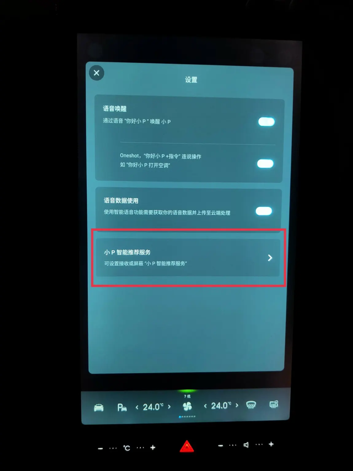开启方式:【点击左上方小p】→【打开右上方设置】→【点击小p智能推荐服务】→【打开后排遗留功能并确认继续开启】