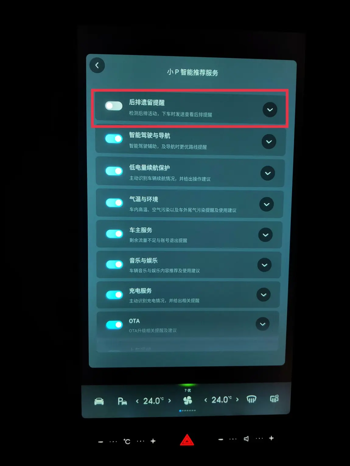 G3 XmartOS 1.9.7版本,本次新增的【后排遗漏提醒】功能,即将进入夏季,因家长粗心导致儿童被遗忘在后座的情况时有发生,可以针对这个场景提供一定的预防作用。