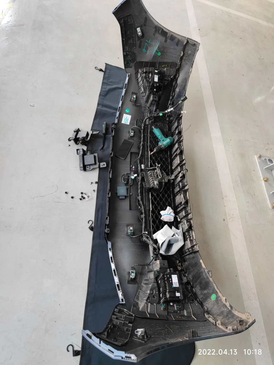 随后开始安装毫米波雷达:后杠角部有两个雷达不用拆后杠