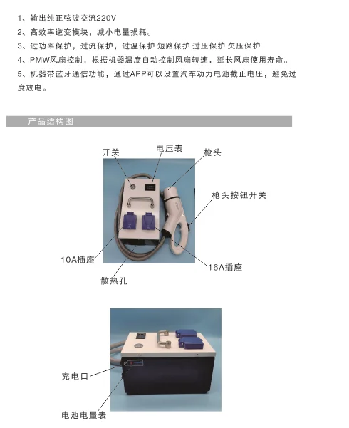 因为国家15年的时候为了推动电动汽车规模发展及规范充电基础设施建设统一了电动汽车充电接口及通讯协议。所以放电设备只要设备通过电池驱动通信协议电路板工作,报送给车辆充电信息,促使车辆连通高压电池包和快充口之间的接触器连通,此时充电枪高压正负有了电池包出来的高压直流电,再经过设备内的高压逆变器将320V-550V的高压直流电变成220V交流纯正弦波。此时220V电就出来了。以下是查到的电动汽车充电系统及通讯协议部分理论基础