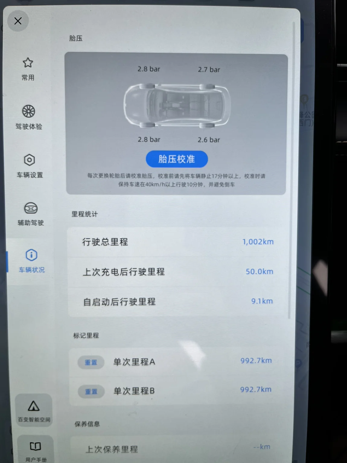 说说能耗吧。对我来说,最重要的是开车的时候舒适度,毕竟,家人在车上,更重要的是坐得舒服,所以都是标准模式+标准能量回收。跑了1002公里,充电180度,大概是17-18度电/100公里。看到各位大神的黄金右脚,确实很羡慕,但是自己试验过几次高能量回收,顿挫感差点让开车的自己