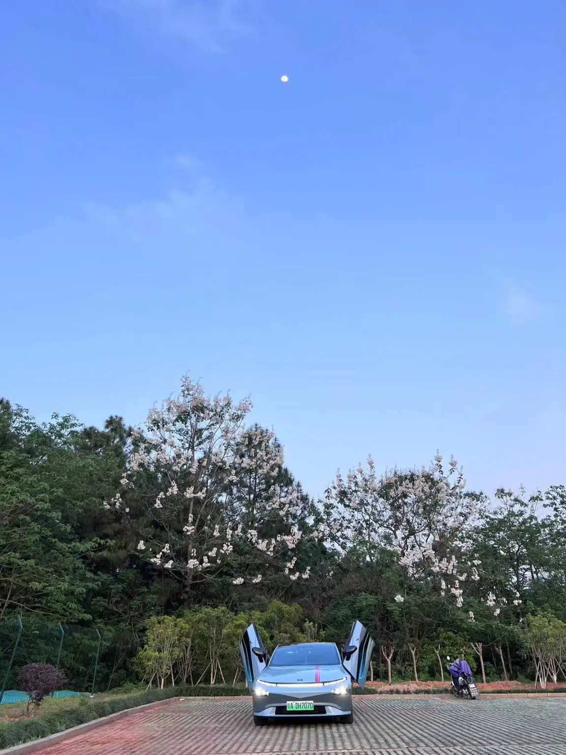 #你镜头下不一样的小鹏##鹏友共创#如此美轮美奂还看小鹏,樱花季最适合带着三两好友出来赏心悦车了,特别是我们颜值这么高的小鹏!鹏翼一开,花香自来,忽然让我想起了一首歌,你这么美,这么媚,这么美美美,我就是整个街最靓的仔!