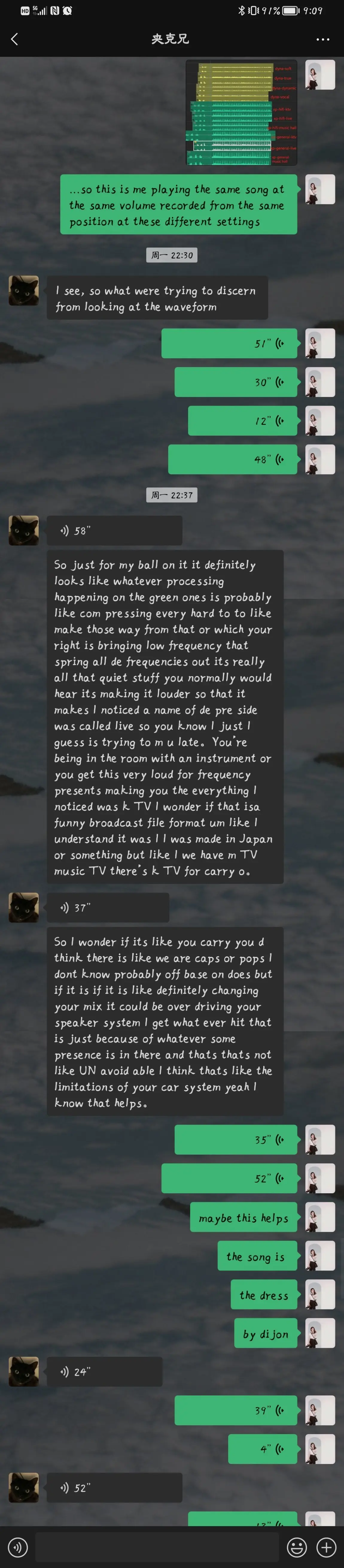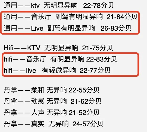 总共听了两遍:第一轮重点关注异响问题.第二部注重用手机下载的分贝测试仪来测试歌曲0-20秒的分贝区间.