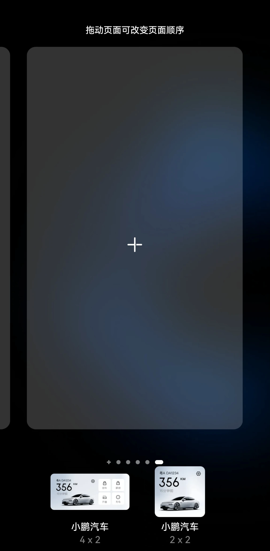 首先在主页双指捏合,选择“窗口小工具”(有的手机叫做“插件”),滑动找到“小鹏汽车”。