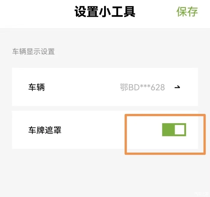 2x2功能的组件就比较简单,主要是显示车牌和车辆剩余续航里程两个基本信息。可以点击“设置”(螺纹按钮),可以选择“车牌遮罩”功能来显示和隐藏车牌。如果有多辆小鹏汽车,可以点击“车辆”来选择主显车辆。