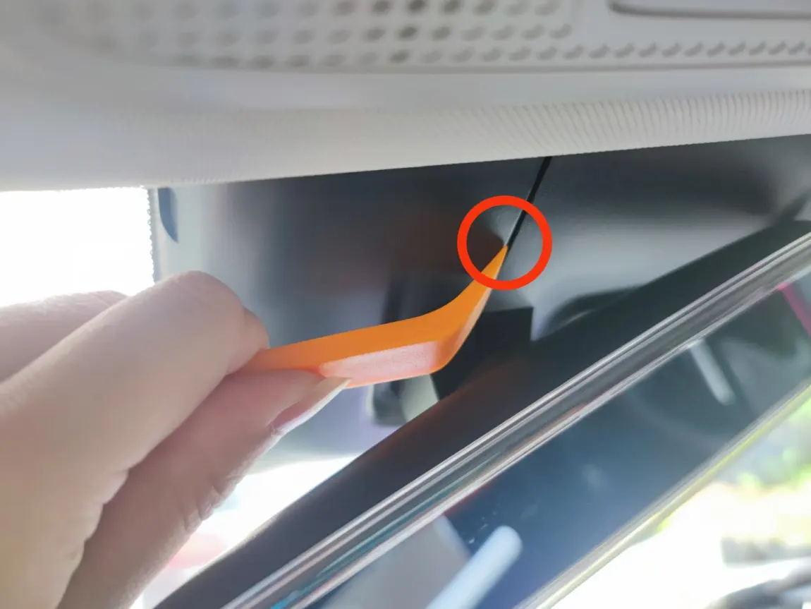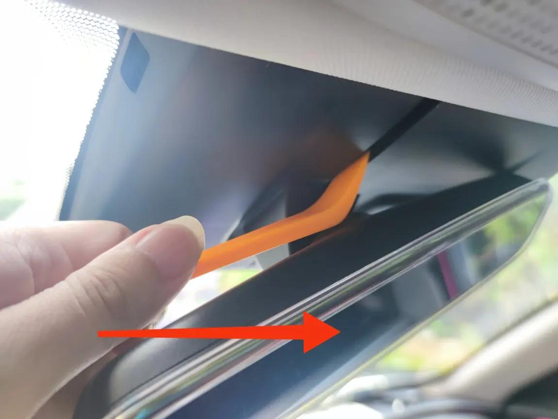 第二步: 插进去后向右➡️扳,翘出左边这一块。这步不要心急,慢慢来,一点点的翘都行,整个安装过程就这里难点点。