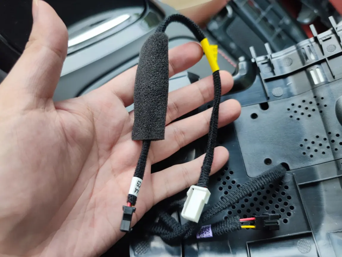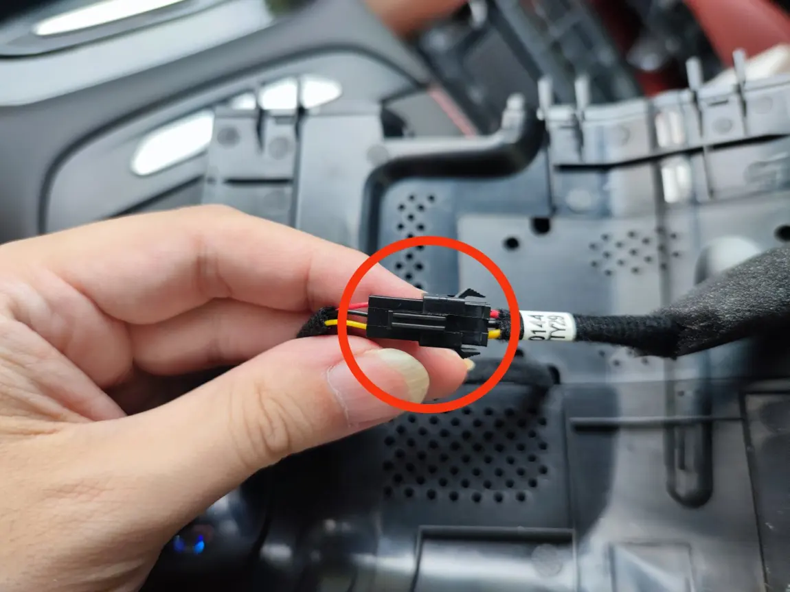 找到保险线,先连接黑色这一端(黑色接黑色),随后严格按照要求整车下电,拔掉盖子,再接好与车断的接口。