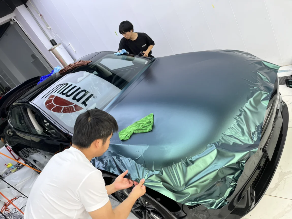 3.这次给我贴膜的师父是5个人,老板的哥哥当然也是改色大佬了,已经在南昌贴佩奇改色膜超过60台,太阳膜超300台(毕竟是合作店)。
