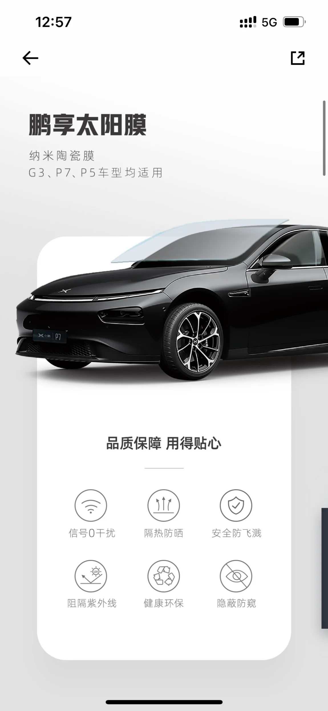 3.【鹏享太阳膜】¥1980(可在app-探索-车品最下方购买),毕竟小鹏服务是出了名的好,那自然是选择小鹏官方合作店贴膜啦,*透露下:这也是我改色的店。