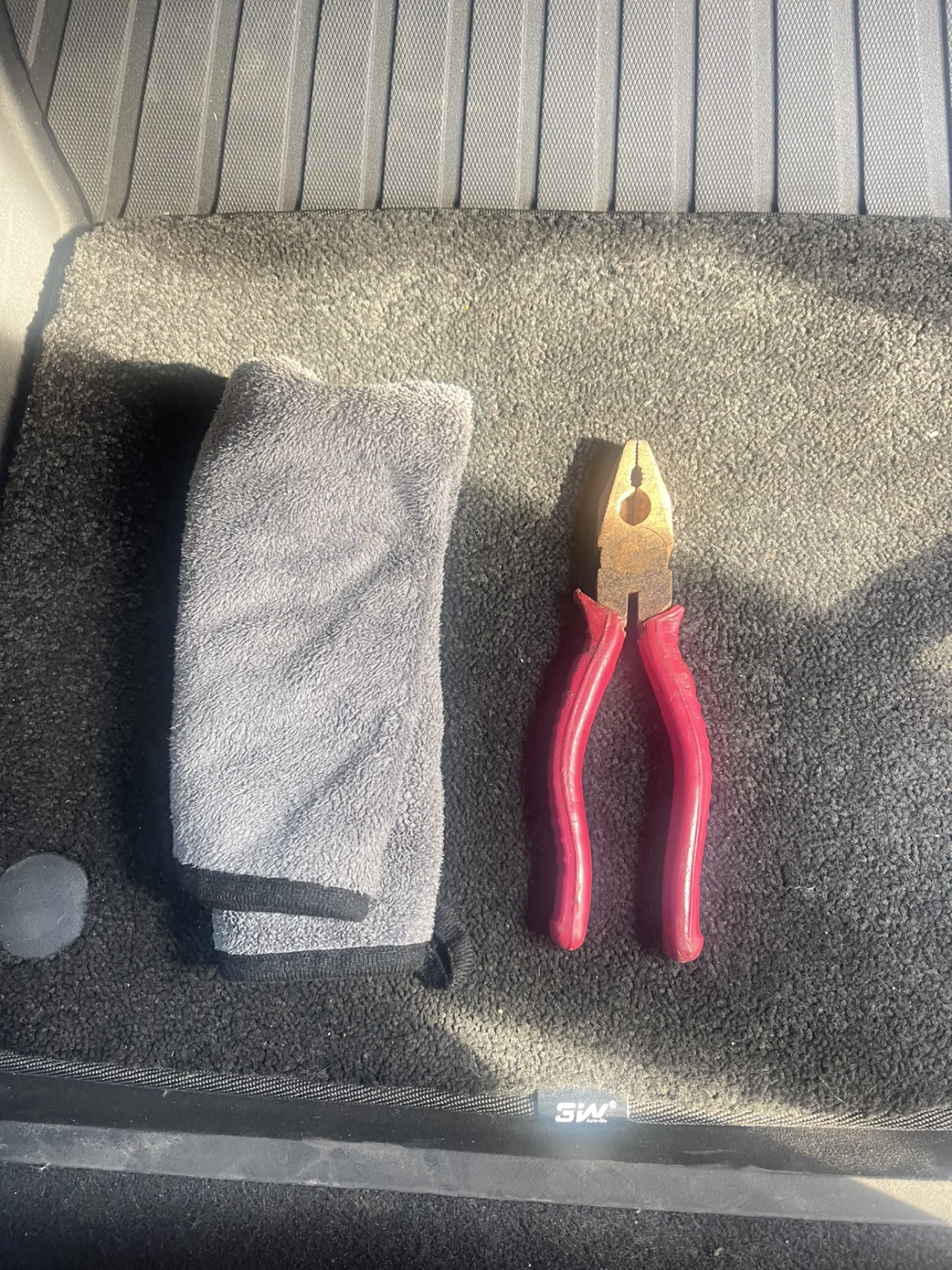 ⭐一个老虎钳和一块毛巾。(这边最好准备一个尖嘴的老虎钳,奈何我没找到,将就一下吧)