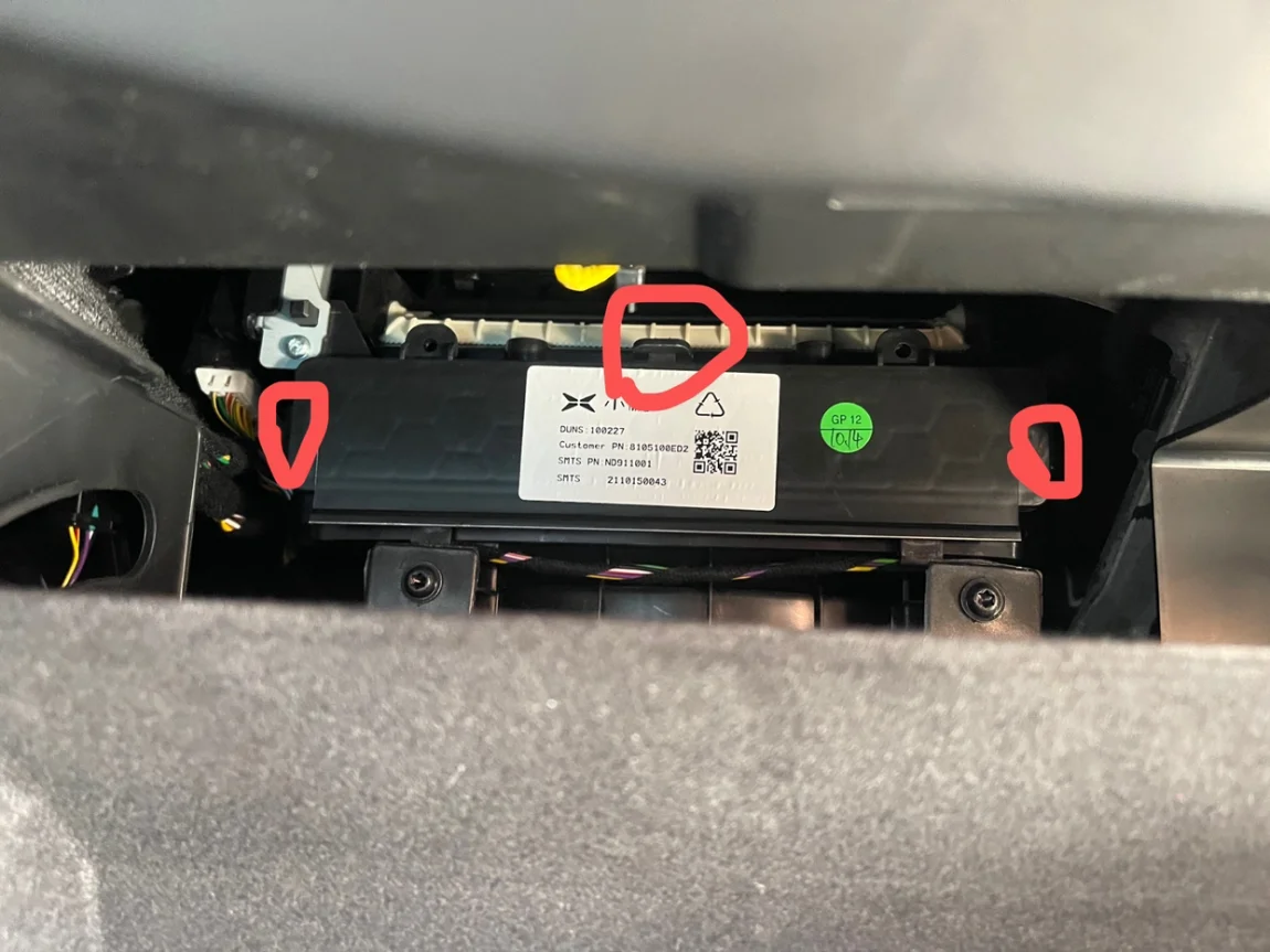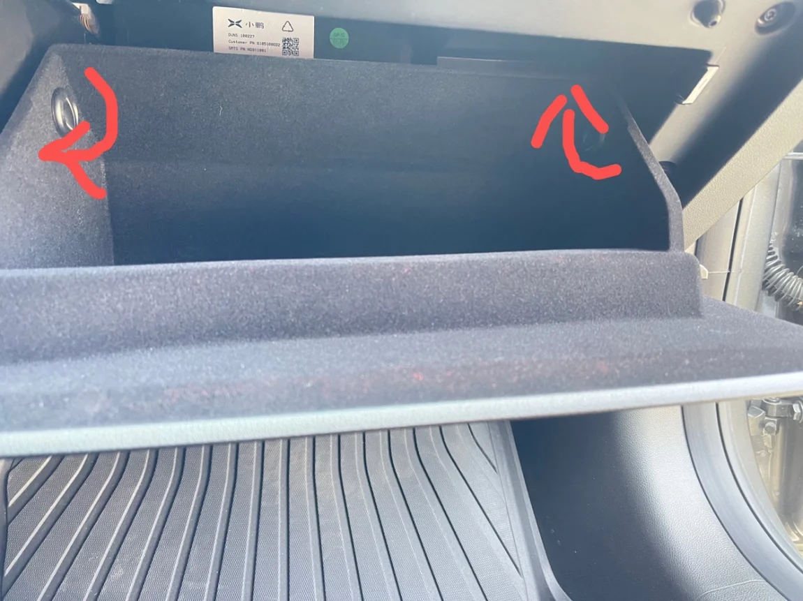 ⭐然后打开手套箱。手套箱两边各有一个黑色的塑料螺丝卡扣。