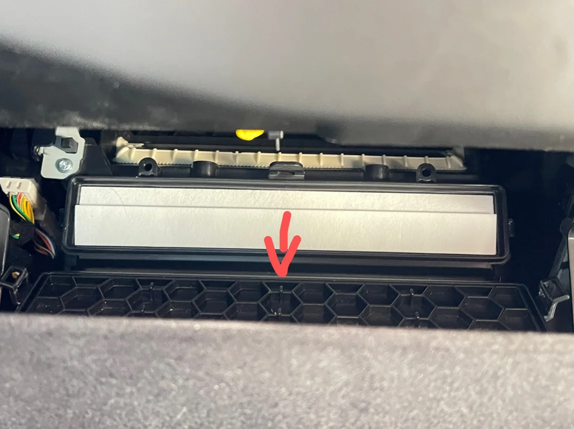 ⭐现在我们可以看到空调滤芯盖板了。(一定要把空调关闭操作。)