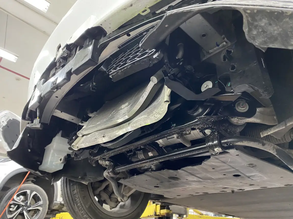 售后说如果想知道小P的受损情况,可以22日去店里。22日一早到店,小P正在做检查,前保险杠和空调水箱损坏,其他都没问题(包括底盘)。我们和工作人员讨论了很久,小P和大轮胎之间发生了什么,我们无解。按照事故发生先后,小P是第二辆事故车,另外5辆有SUV、有轿车,但小P的伤比另外5辆车都要轻。#小鹏用心服务#