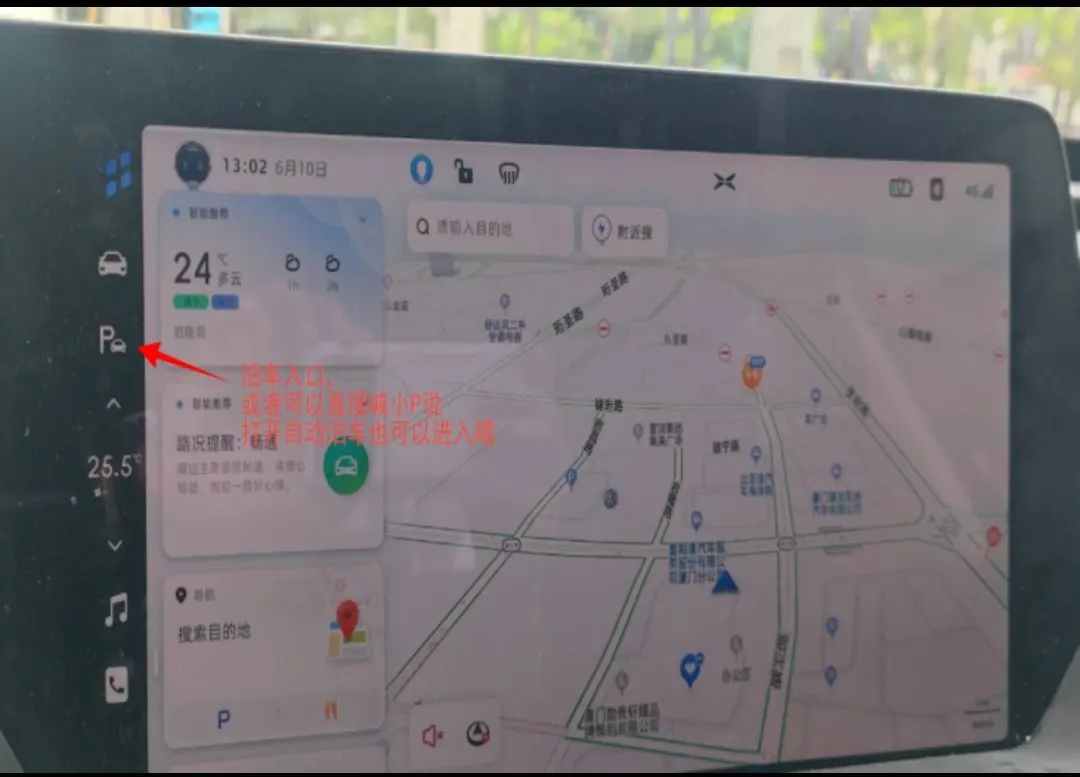二ヽ钥匙泊车,同样的方法,大屏点击泊车,找到车位后,选择车位-踩刹车-挂P档→_→
