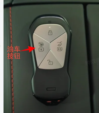 开门下车-长按钥匙泊车按钮10秒左右-车辆双闪后视镜收起,说明系统已经准备好,此时再双击泊车按钮就可以进行泊车啦,泊车过程中如需停止,按下钥匙上任意按钮即可,重新启动重新双击泊车按钮。