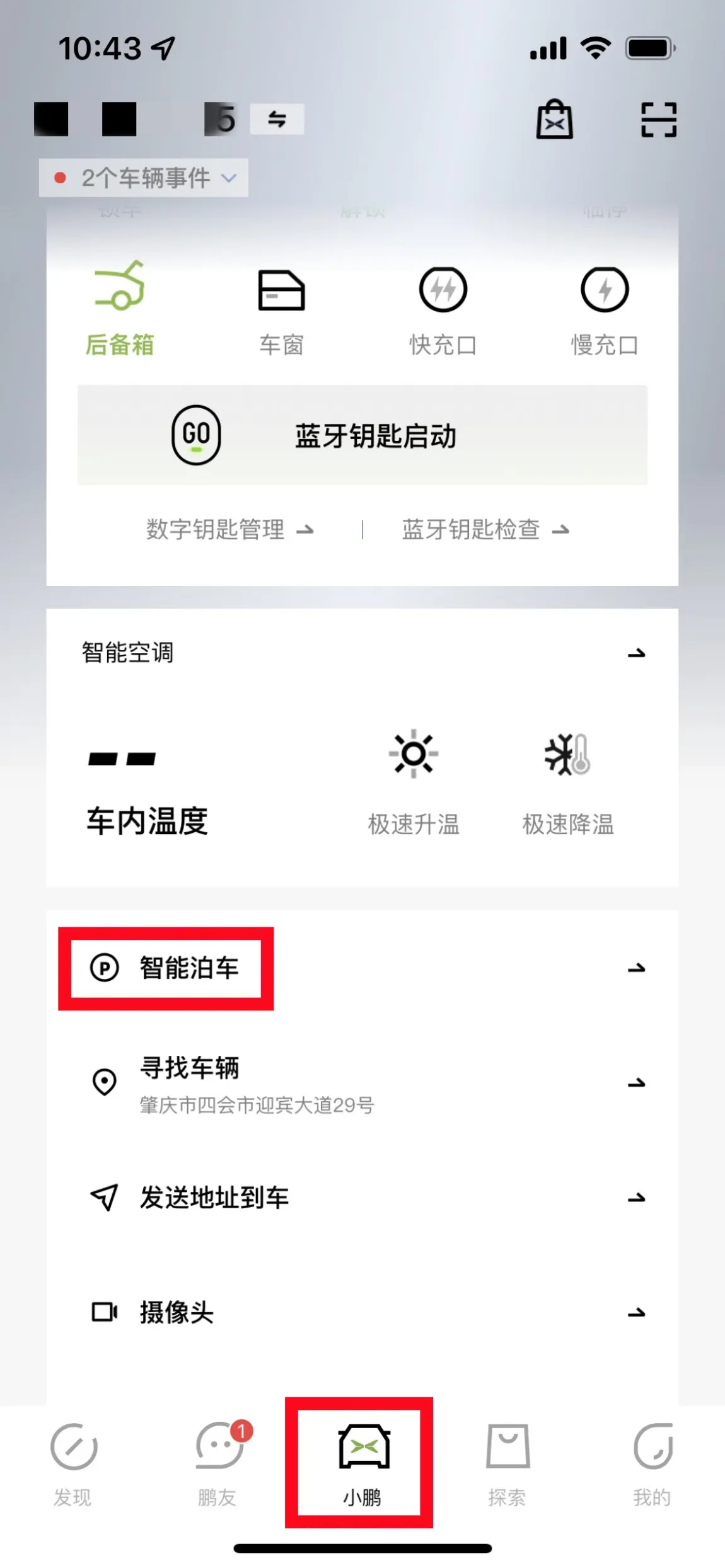 三ヽ手机APP泊车,操作方法跟钥匙泊车类似,唯一的区别在找车车位,挂P档下车后,钥匙换成手机来控制车辆,手机泊车的如下图,在APP-小鹏-智能泊车-点击进入泊车界面