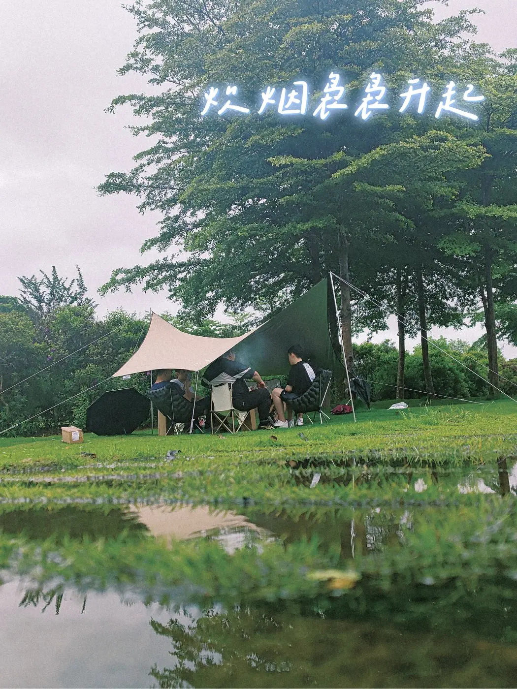 🏕️露营地是群里鹏友常去的三江口温泉湿地公园,位于快速路旁,是一个围绕温泉水而建的开放式公园,拥有一大片草坪,平时很多周边的人来散步,一到周末着变成露营圣地,很多家长带着小盆友来野餐,露营,放风筝。。。