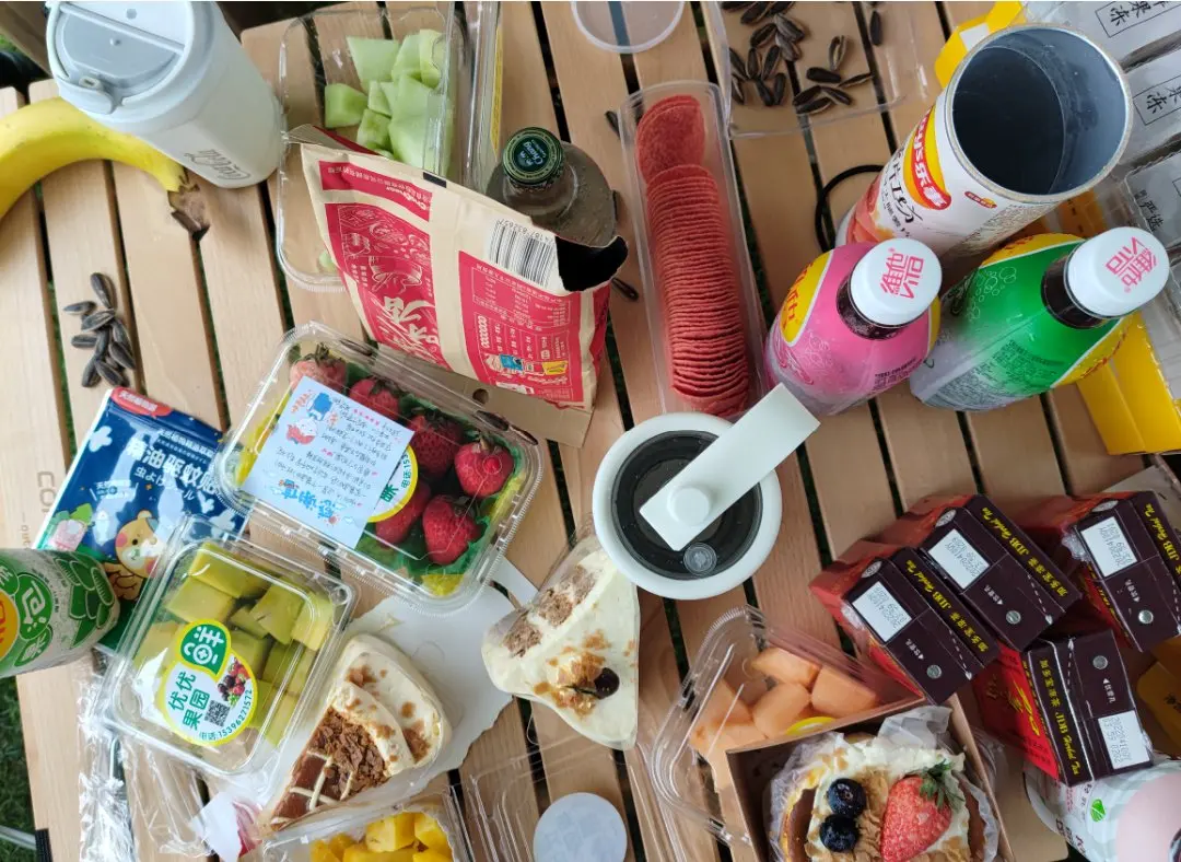 🏕️物资小组辛苦,虽然没吃上热腾腾的美食略显遗憾,但是瓜子饮料也不错,重要的不是吃什么,而是享受当下。一把靠椅,一杯咖啡,一根串串,听听风雨,悠然的生活。