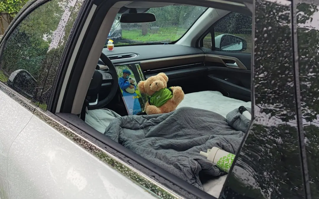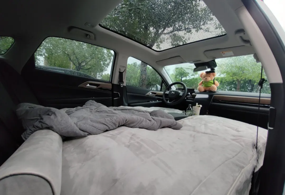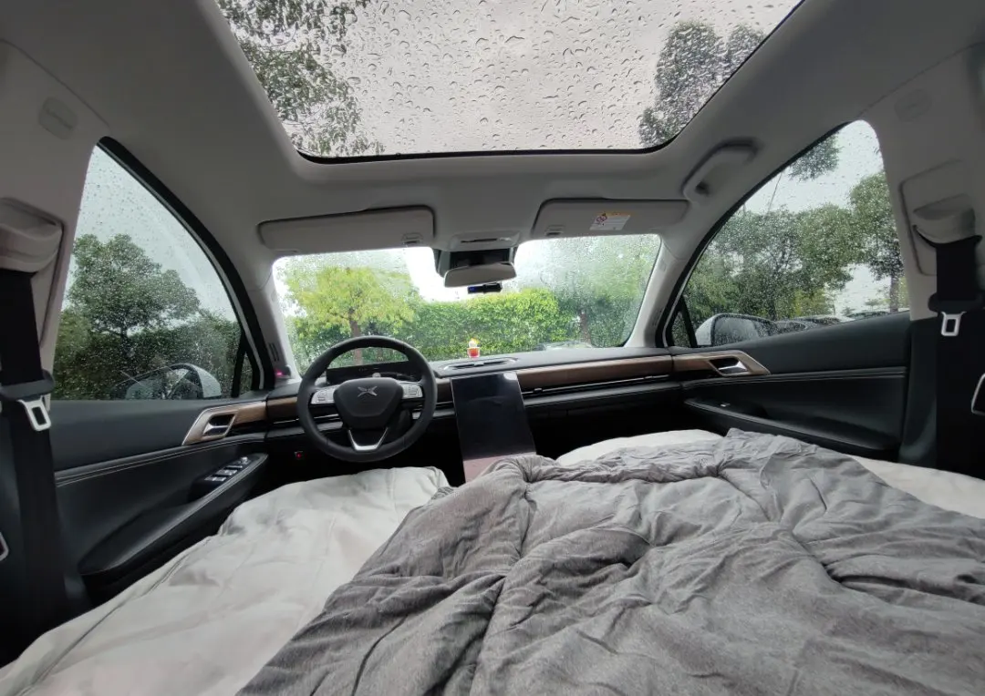 🏕️短暂的雨停了,提前布置好了百变睡眠空间,钻车里休息一下,能躺着为什么要坐着呢?只有P5拥有百变空间,呼叫小P打开睡眠空间就行,它会自动的把座椅放平形成一张大床,瞬间就变成一间大床房;接上车载麦克风,秒变KTV;接上投影布,秒变电影院。