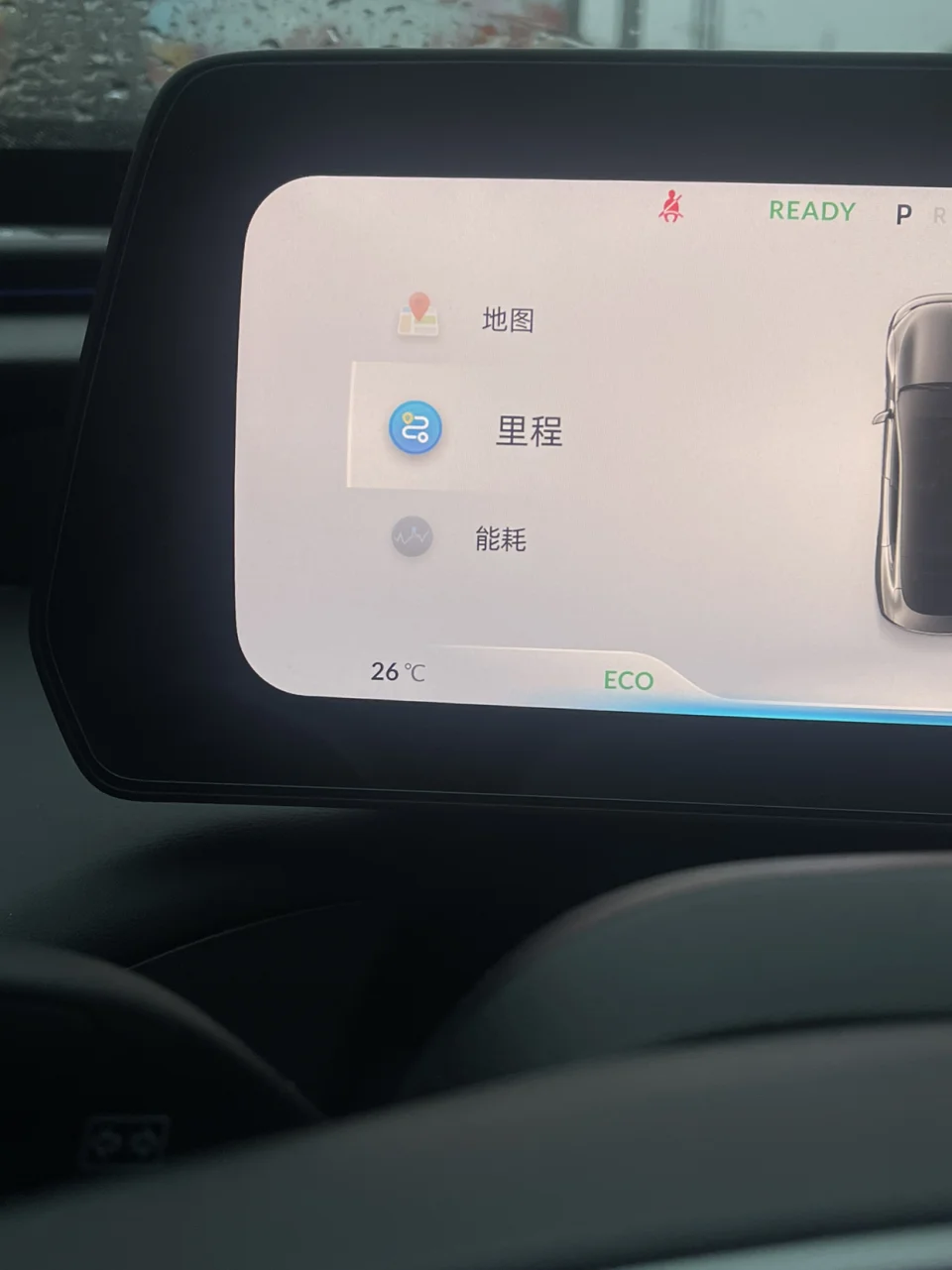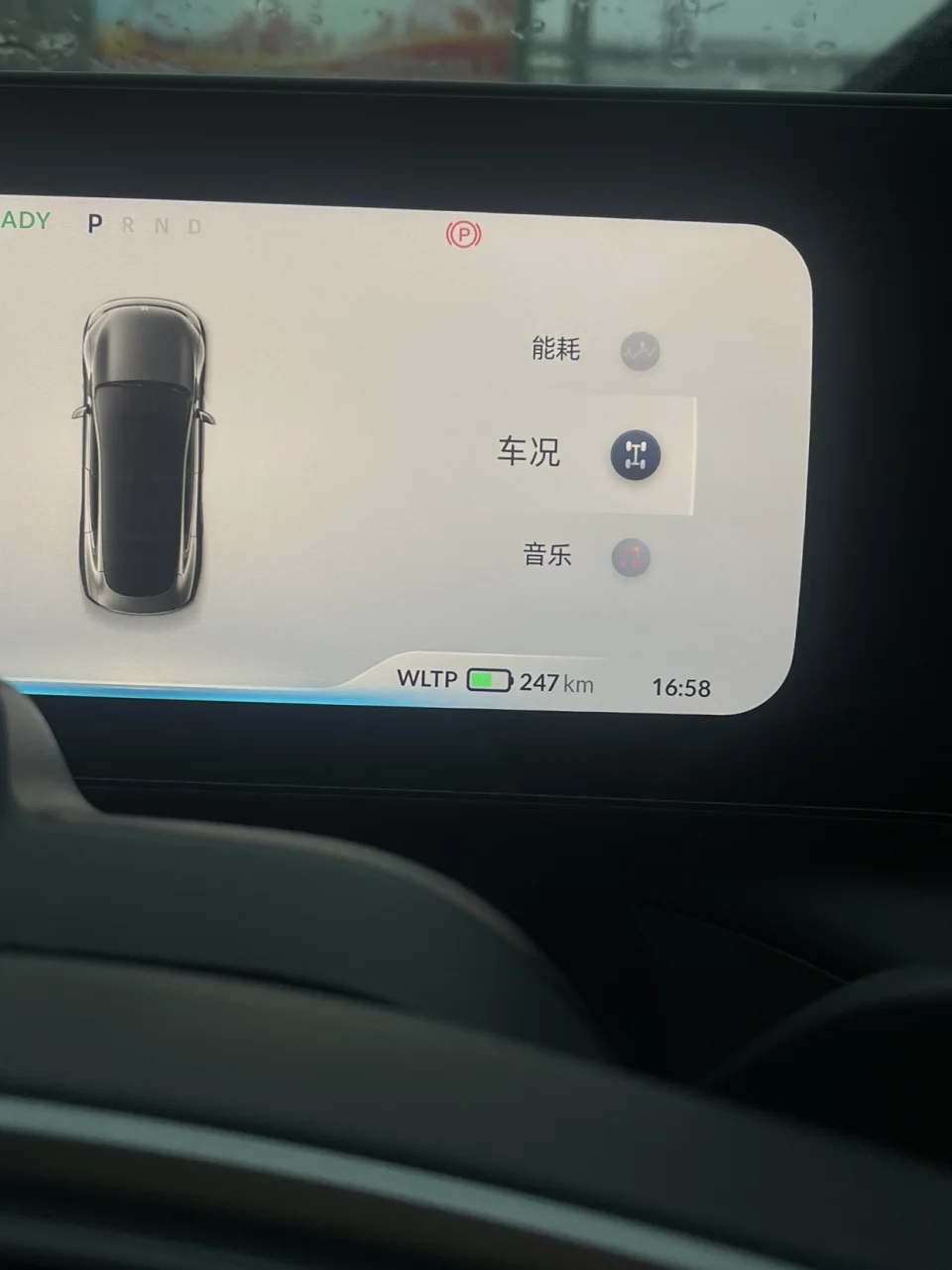 (仪表显示的内容分为音乐、地图、能耗、车况等。)
