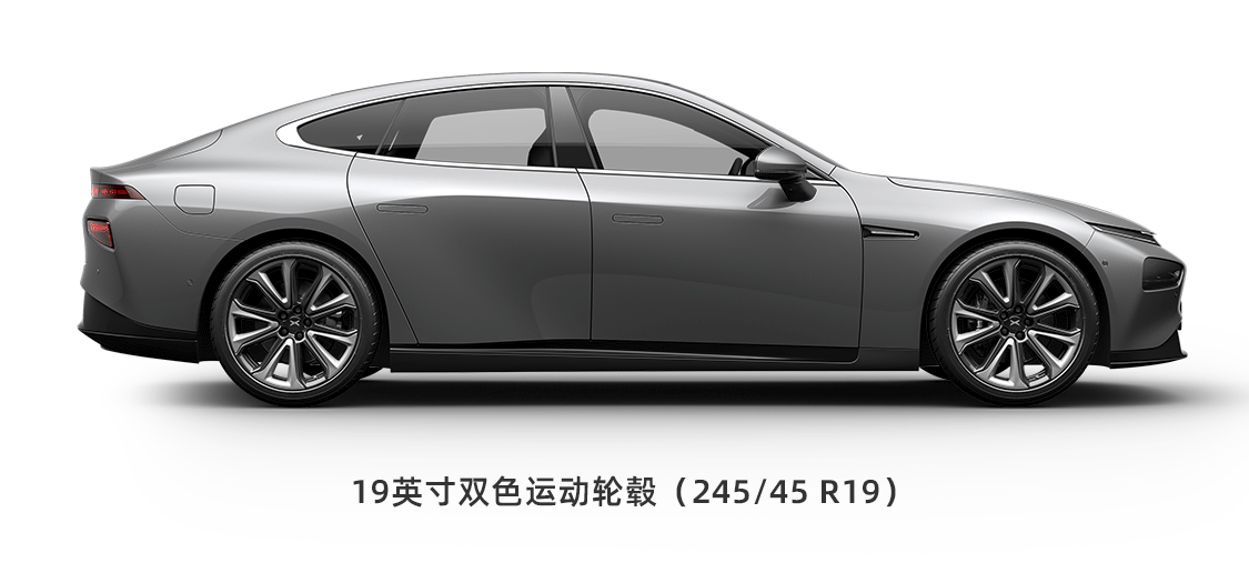 小鹏P7四驱高性能车型标配了19英寸全黑运动轮毂(245/45 R19),均可以免费选装19英寸星云轮毂(245/45 R19)。