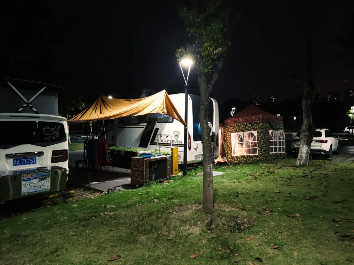 直到某天灵感乍现,似乎之前去过的“北湖生态公园”能符合自己的苛刻要求,因为那里的停车场专门有一个房车区让我印象深刻。于是又通过大众点评上的几百条评论确认了几项重要信息,决定周五晚上去初探一夜。