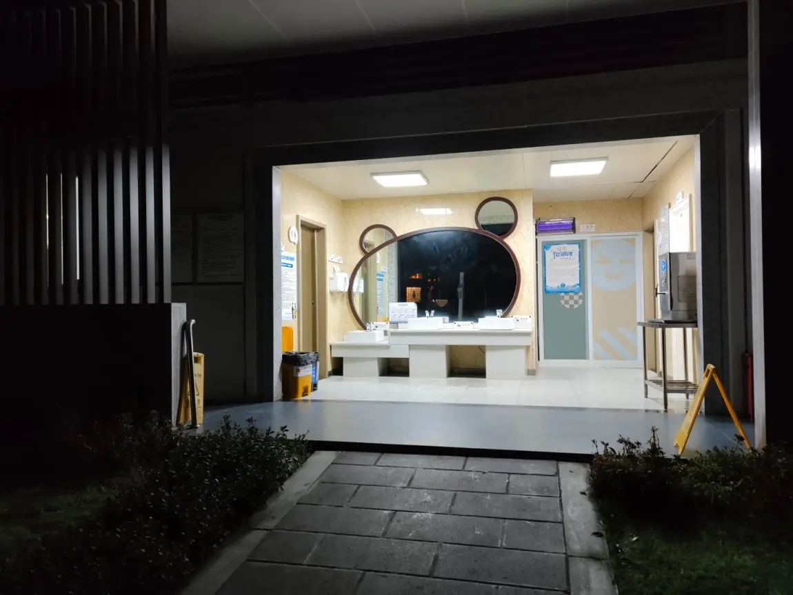 停车场是全天24小时可进出的,房车区是在“东六门”的停车场,这儿的周边配套比较齐全。100步之内就有公厕,可洗漱,并且还有简易淋浴间,带电热水器那种哦。