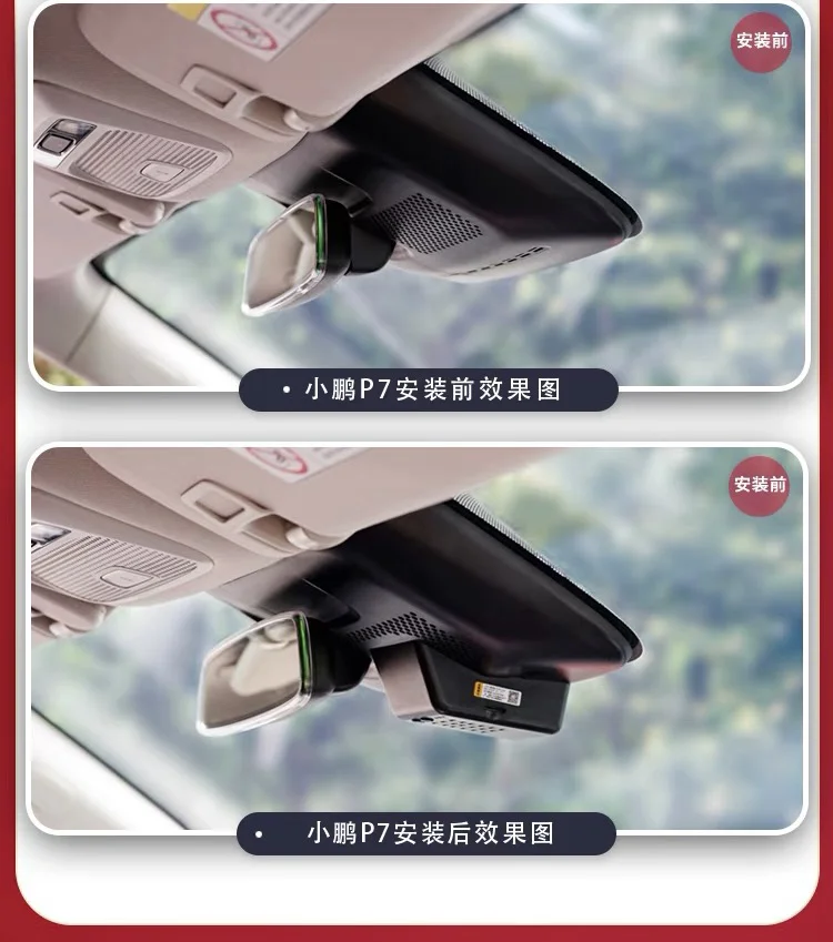 某宝上有很多这种p7专车专用的记录仪,与车融为一体。某音上也很多人推荐。我购买了前后双摄的版本。因为需要拆原来的后视镜顶盖及布线,还是建议车友找店安装,不要自行安装。