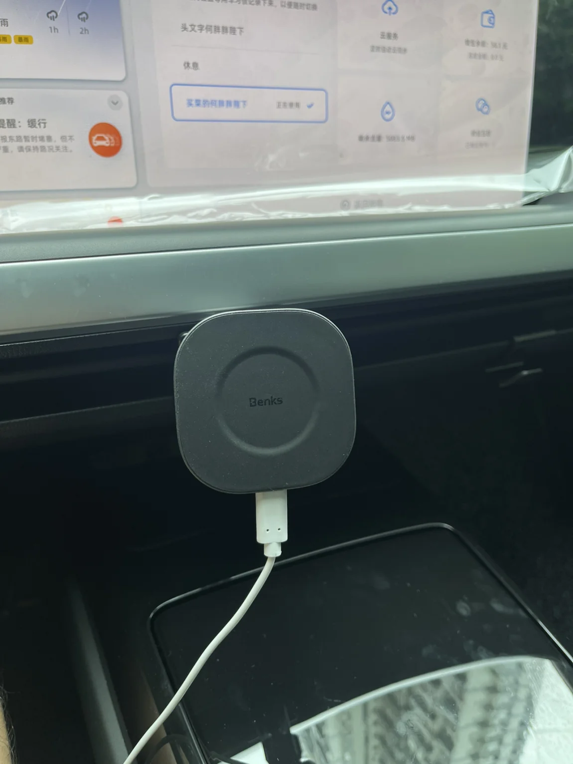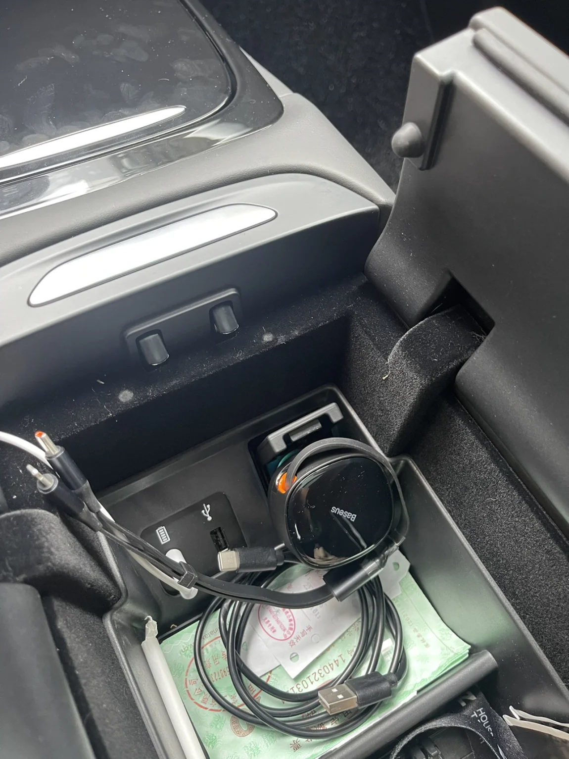 p7手扶箱没有设计出线口,缝隙太小,一般线很难出来。甚是困扰。找了很久找到这款自带扁平线收纳的充电器。实测出线十分顺利,拉伸不会和皮面干涉。也是品牌货,安全有保证。