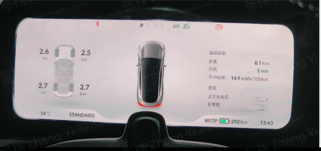 5.车况-这个界面就是胎压显示啦,可以看到4个轮胎的压力变化。❤这里说一句G3/P5最佳胎压值四个轮都是2.5,P7最佳胎压值前轮2.5后轮2.7喔(*˘︶˘*).。.:*♡❤