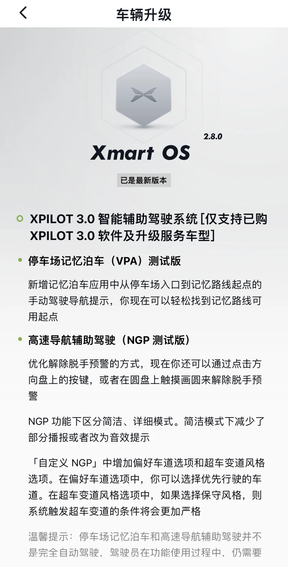 P7·2.8.0正式版更新也有好几天了,这应该算是P7的一个大版本更新,从2.7到2.8不仅新增了小P语音更多的指令操作,还新增优化了部分智能辅助驾驶。