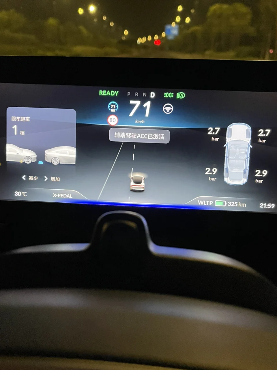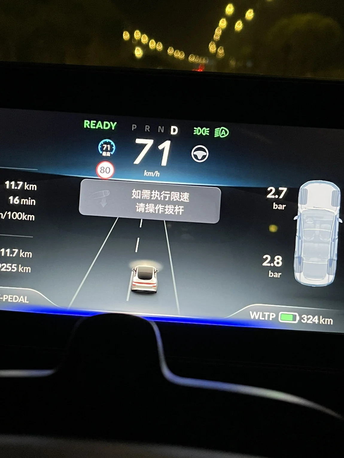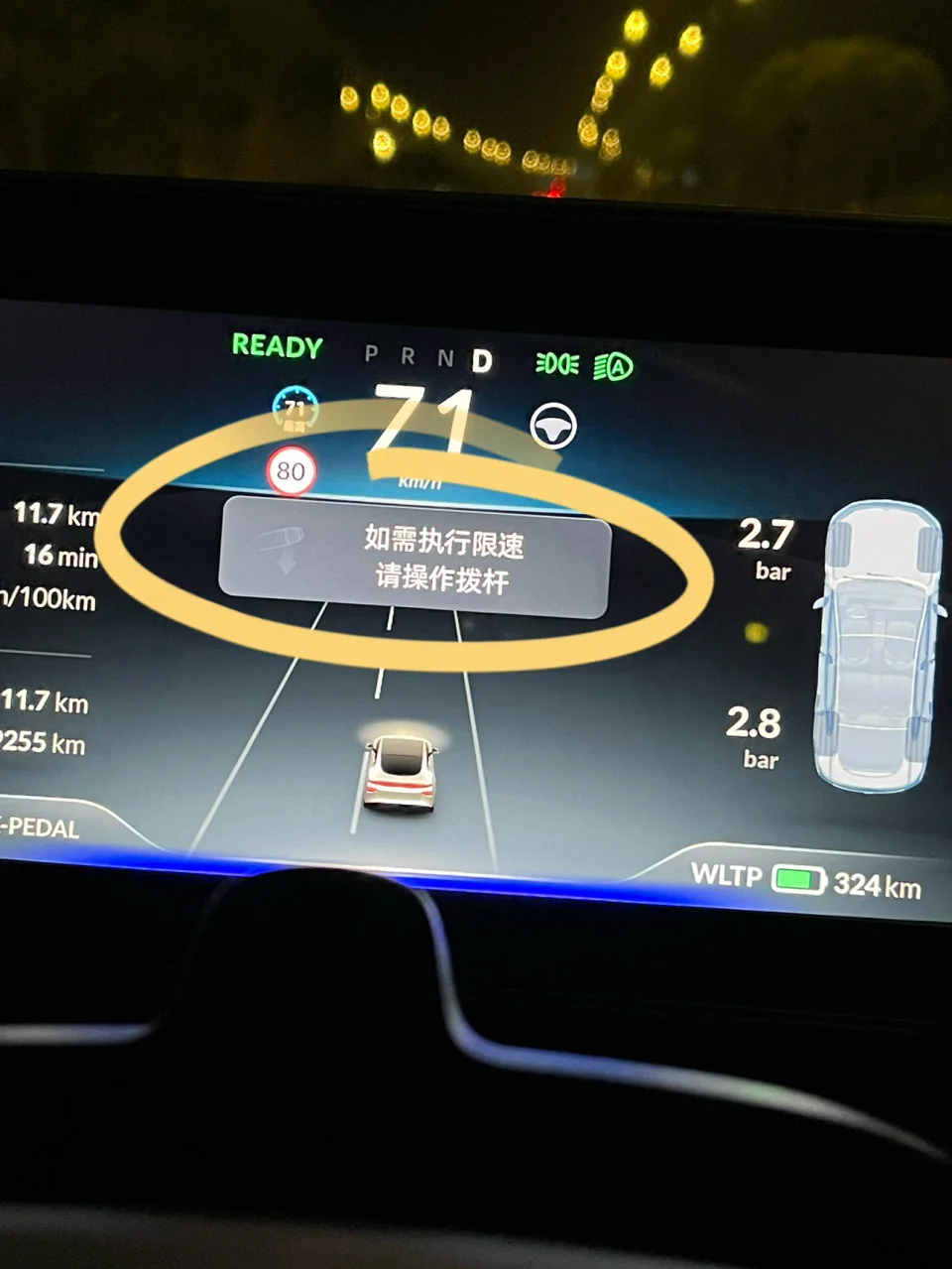 建议:(限速标志识别有点慢,每次都是车辆与限速标志平行或者已经驶离标志,仪表才会显示或者限速,可能是我晚上测试的原因)