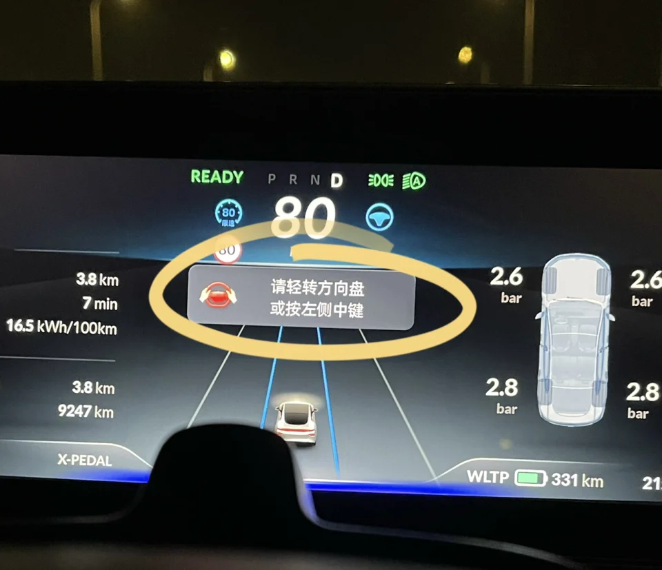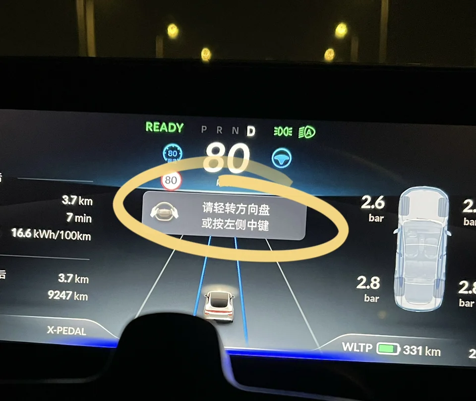P7·2.7版本当我们开启Lcc后,脱手预警是需要通过转动方向盘才能解除。此次2.8.0更新后,脱手预警可以通过点击方向盘按键或者画圈解除预警。