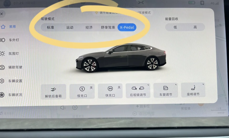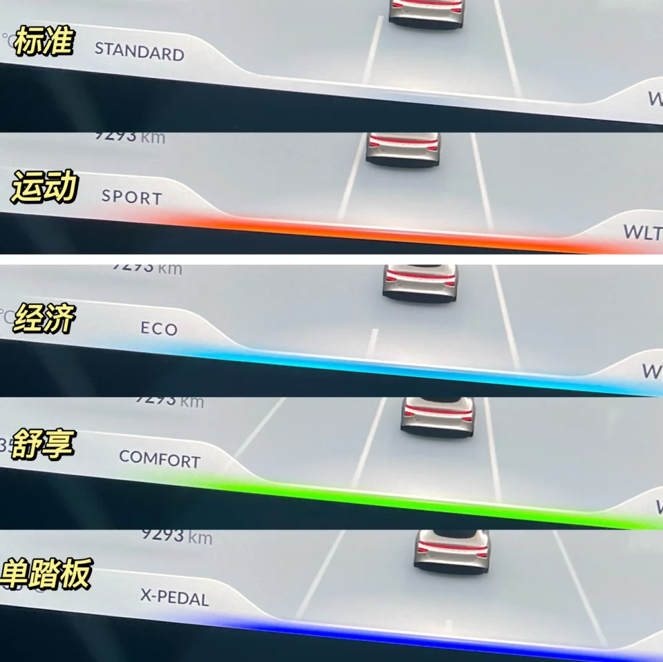 P7如今五种驾驶模式现在终于全部集齐在一起显示了。而且每种功能仪表还会有文字和不用的底色显示。对于一直用单踏板模式而言,此次优化仪表盘更能突出,不像以前单踏板模式,仪表不易分辨。