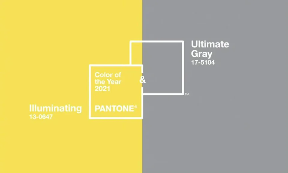 21年Pantone公布了2021年度代表色,由Ultimate Grey终极灰和Illuminating明亮黄的色彩组合,代表了力量与希望。