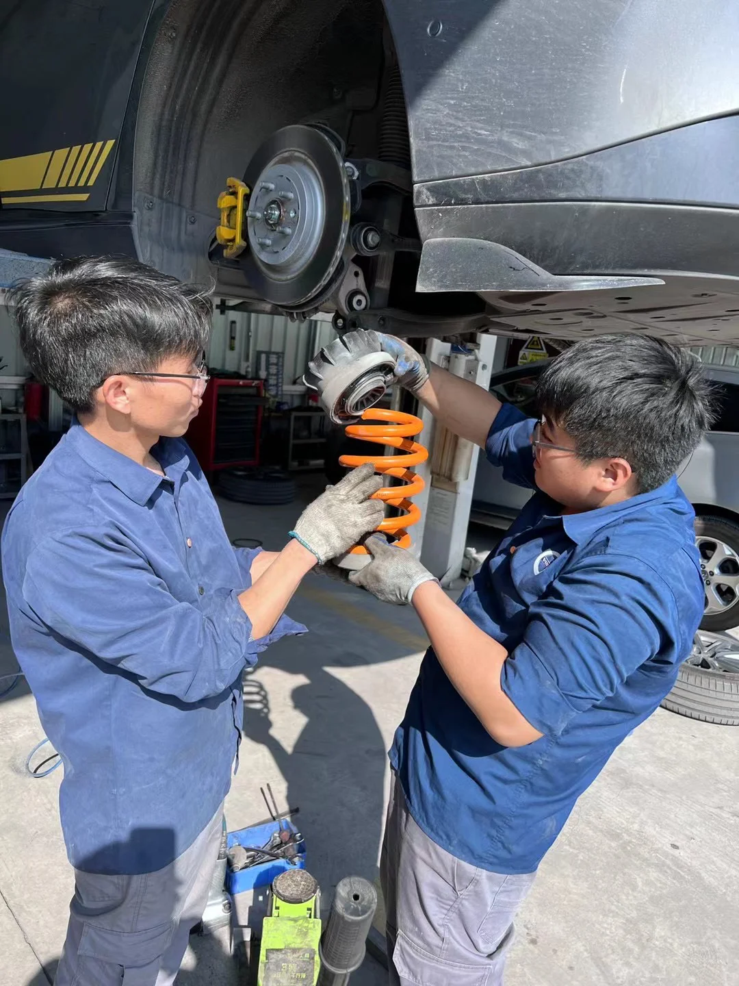 改装有云,一低遮百丑,于是短簧避震也安排上了,为了避免刮底受伤地板,又给地板加装了一块装甲,完美适配。