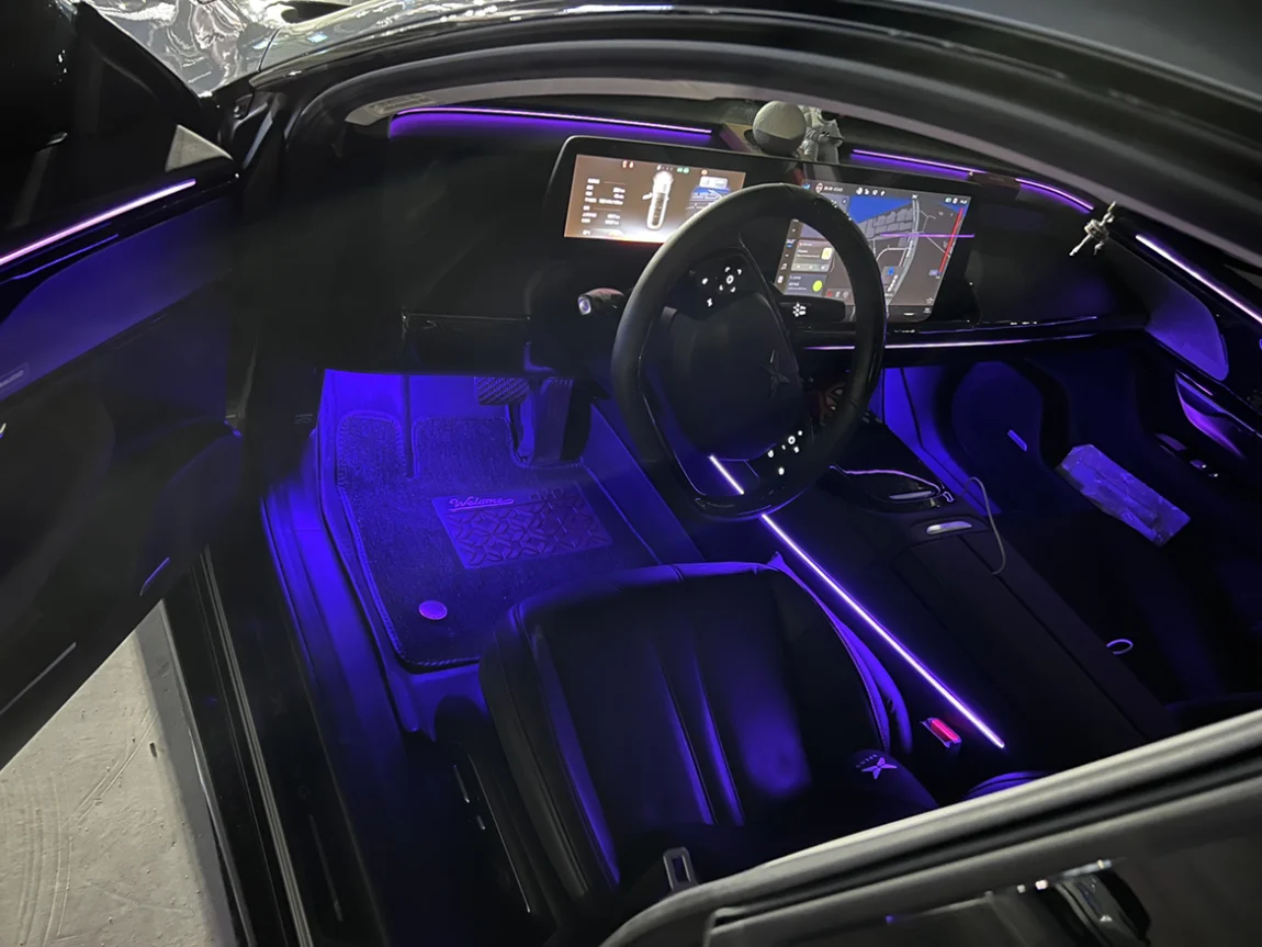 外观到位了,内饰也没停下,给佩奇重新布置了一套脚窝灯跟马鞍灯,让氛围灯不再简单,更加优雅大气。