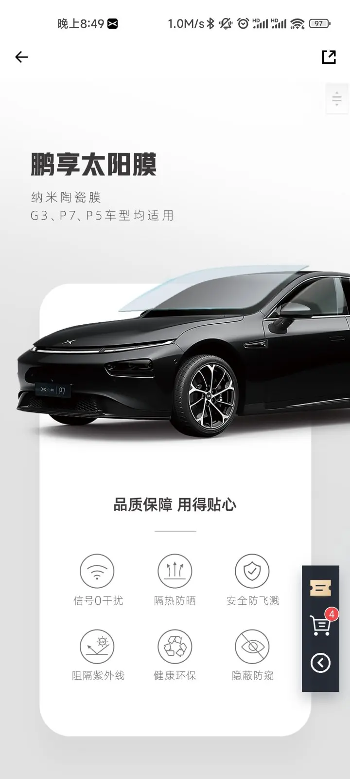 💡贴膜的效果是立竿见影的,能明显感觉到比贴膜前凉快,但在室外停放过长时间后,车内温度也还是会高上来的,这也是没办法了。 像小鹏G3i这样子对夏季不友好的座舱设计,贴膜也一定是刚需啦。