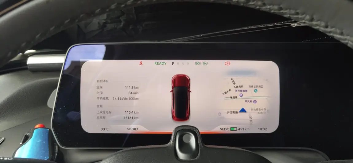 之前跑高速的时候,一直使用经济模式,加上高动能回收,基本在16kw/100km. 现在使用运动模式, 加上高动能回收, 可以跑出14kw/100km。