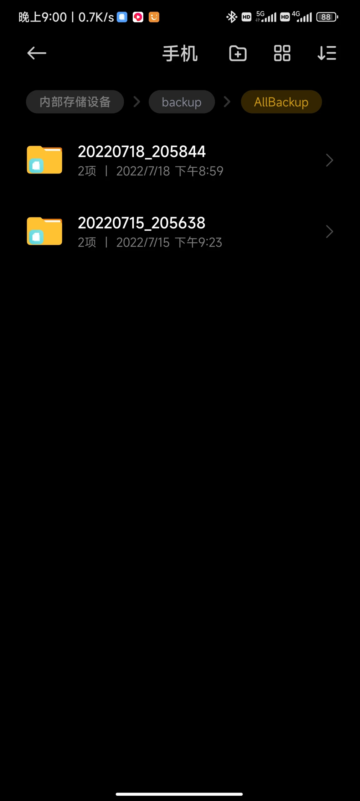 Step4:在文件管理中找到刚才备份的文件,路径为:手机→内部存储→MIUI→backup→Allbackup