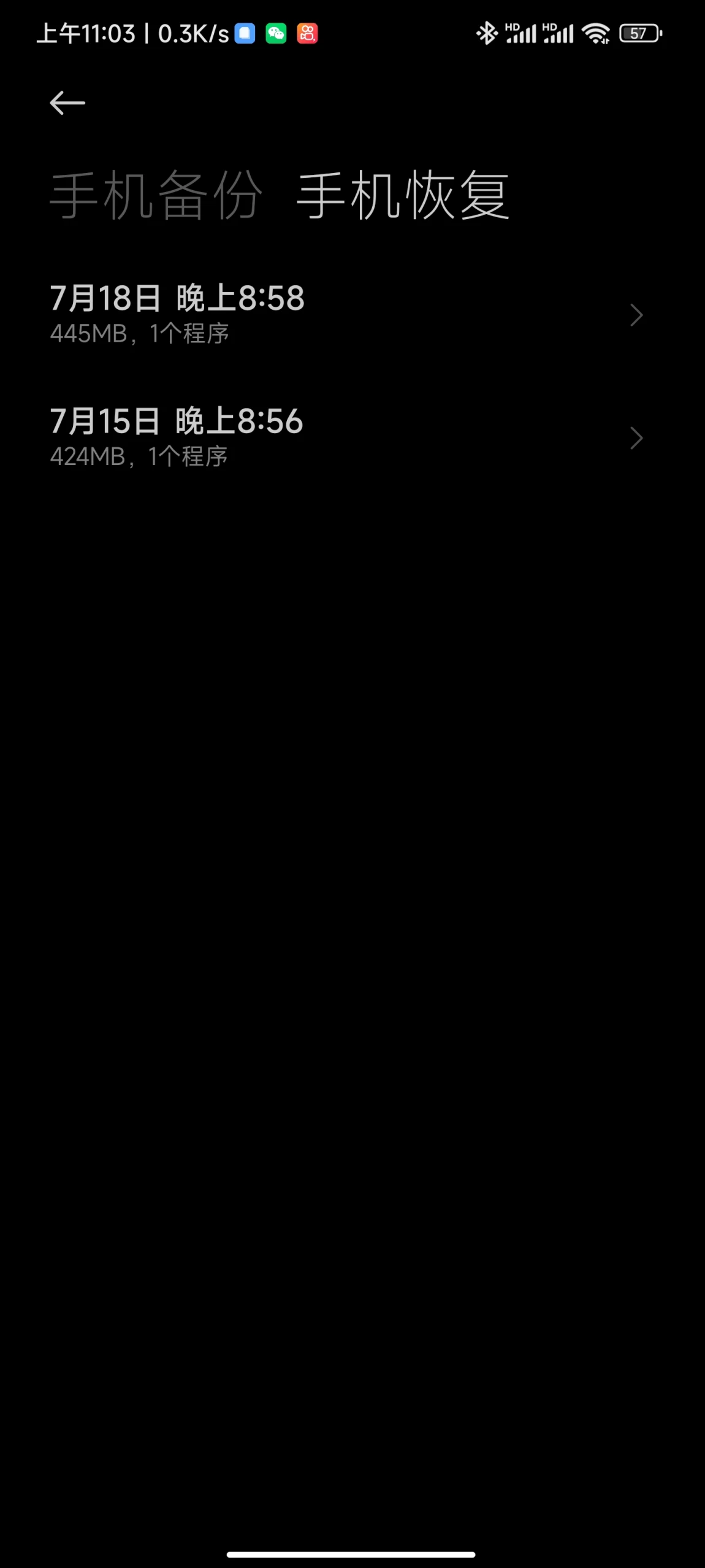 Step9:在设置中再次找到手机备份恢复,选择手机恢复,选择对应的备份文件(注意看时间)恢复即可(恢复前如已安装小鹏汽车APP请务必先卸载)
