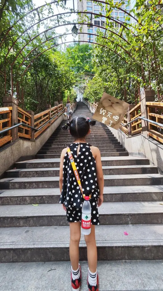 一天的重庆游最终在朝天门来福士对面的桥洞圆满结束,一天下来确实很热很累,但对于想探索重庆更多未知的小朋友来说一点都不辛苦,希望这些照片能够在她高中毕业后重返此地与小时候的自己在合影留念吧!