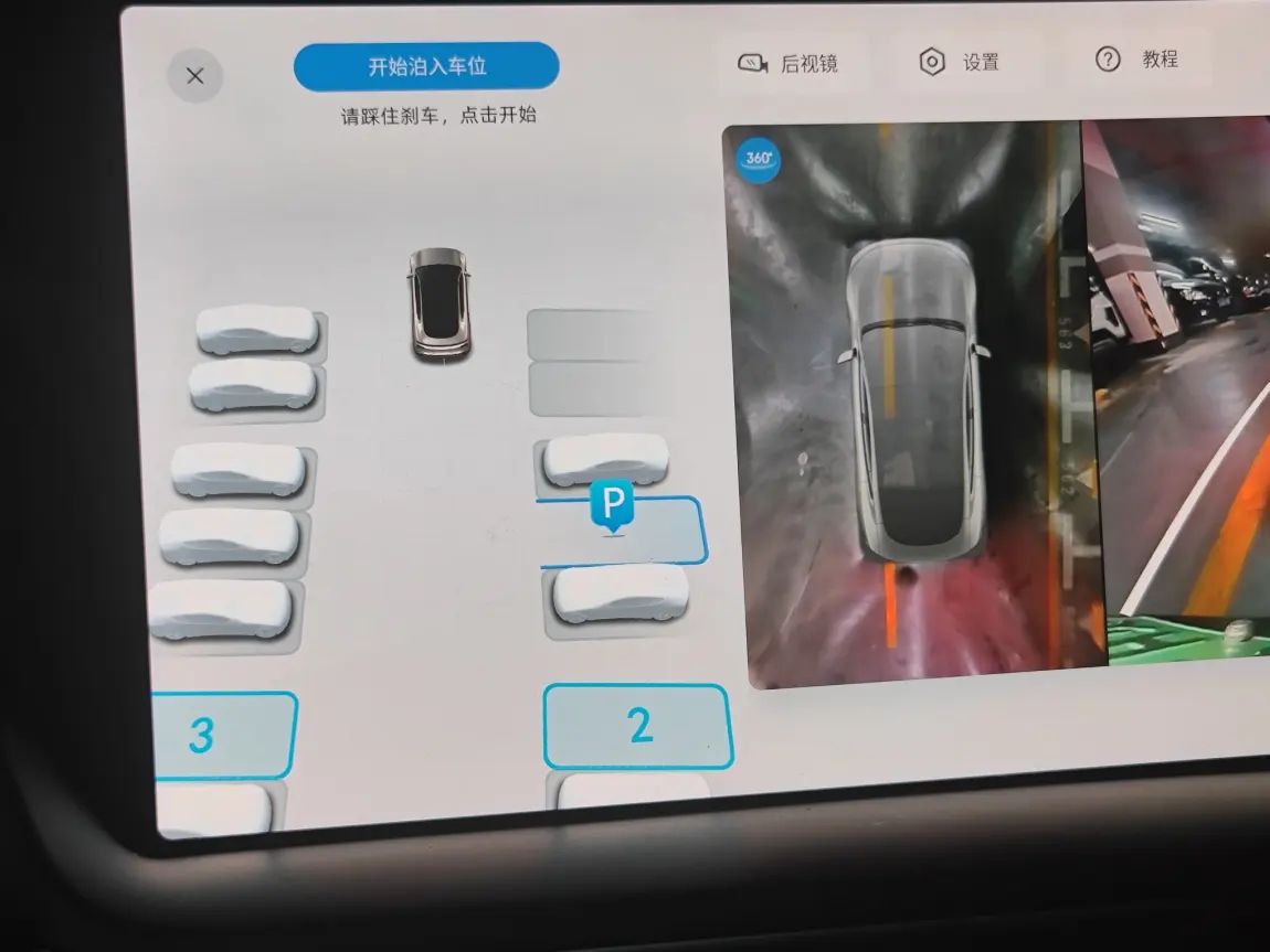 倒车时车机大屏会自动切换为360影像,以辅助驾驶员进行手动倒车,无需单独打开。当遇窄路会车或限宽等场景时,可以语音让小P打开360影像或点击大屏摄像头图标开启。