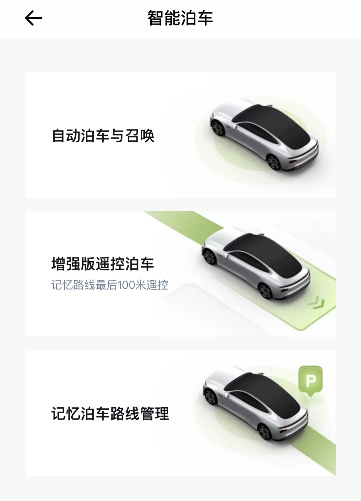 E版本可用记忆泊车功能,实现按设定记忆路线自动行驶及泊车。