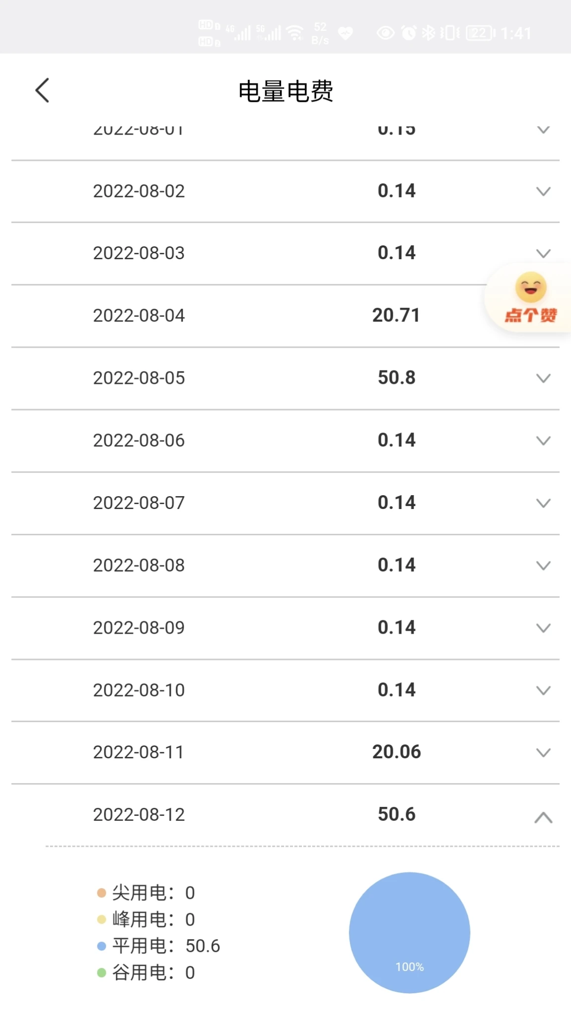 Ø8月11日晚上在重庆用家桩充90%,续航518公里,电量50.6*0.54=27.32元。